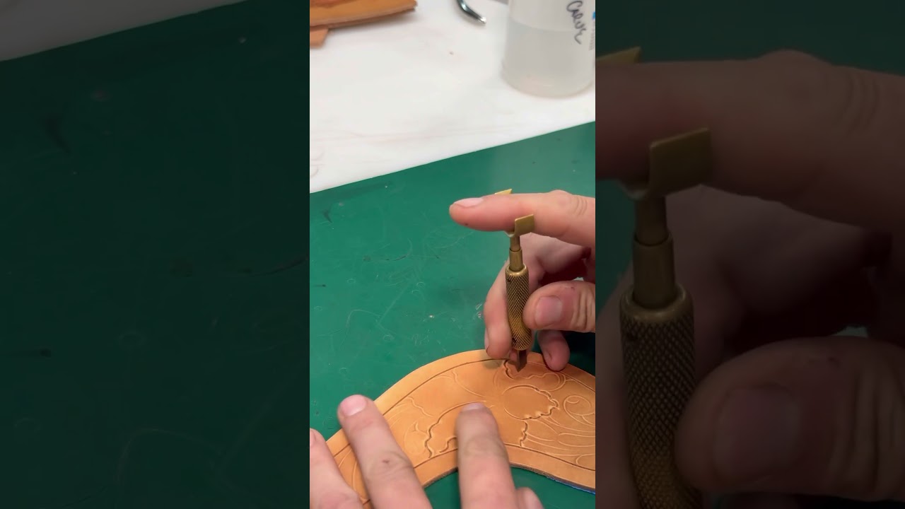 Carving a tap off pattern for a spur strap. #leathercraft #leatherwork #leather