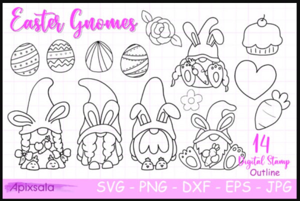 この記事では、デジタルスタンプとして提供されるイースターをテーマにしたノームのデザインを紹介しています。ノームは依然として高い人気を誇るキャラクターであり、様々なイベントや季節に合わせてアレンジが可能です。特にイースター向けにデザインされたこのコレクションは、可愛らしいノームたちがウサギの耳やイースターエッグといったモチーフを身につけているのが特徴です。合計14種類の異なるデジタルスタンプデザインが含まれており、それぞれがユニークなノームのイラストを提供しています。これらのデジタルスタンプは、クラフトプロジェクトに手軽に取り入れられる素材として注目されています。