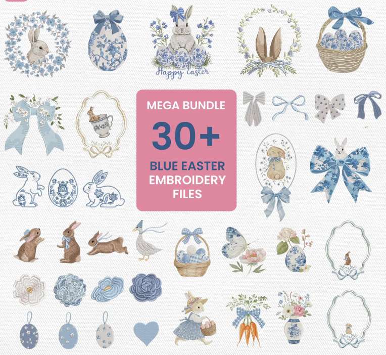 ### エツィーで注目の「Blue Chinoiserie Easter Embroidery Bundle」