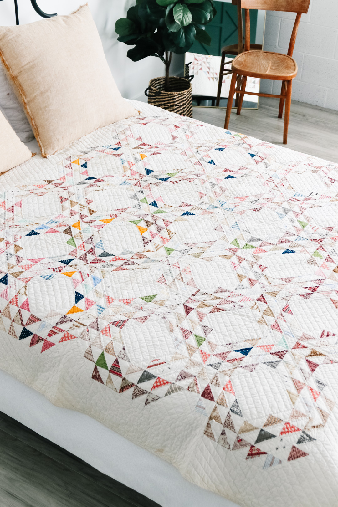 - 小さな三角形のピースを正確にカットし、丁寧に縫い合わせることで、全体のデザインの美しさが向上します。ロータリーカッターや定規を活用し、正確なピースワークを心がけましょう。