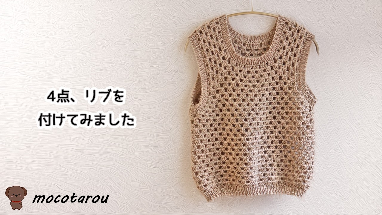 ベストに4点リブを付けてみました。棒針編み