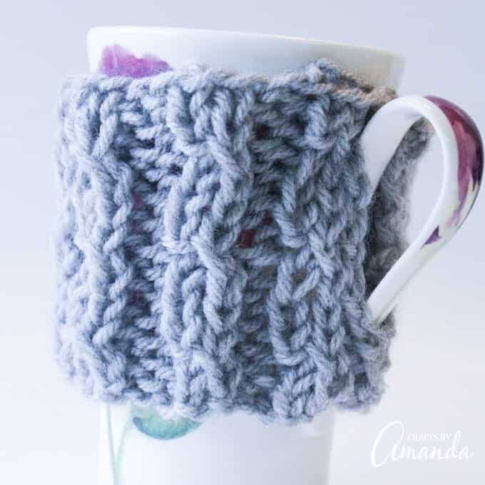 手編みのコーヒーコージーで飲み物を温かく保つ