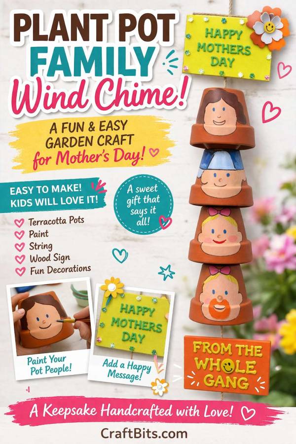 Mother’s Day Plant Pot Family Wind Chime for Kids – A Cute Keepsake Craft for Parents, Teachers, and Classrooms