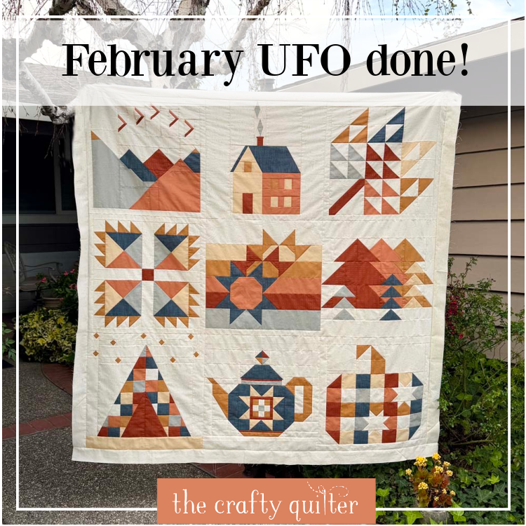 筆者は毎月1つの未完成プロジェクト(UFO: unfinished object)を完成させるという目標を掲げており、2月の目標であった「Sweater Weather Sampler」のキルトトップが完成したことを報告しています。これは、昨年「Nine Patch Quilt Collect」が主催した「2025 Sweater Weather Sampler」という企画に参加して制作していたものです。キルトトップのピースワークが全て完了し、残りのキルティング工程は、ロングアームミシンを持つ義理の妹に依頼する予定とのこと。厳密には「完成したキルト」ではないものの、細部にこだわりすぎず、UFO解消という目標達成を優先する姿勢が伺えます。