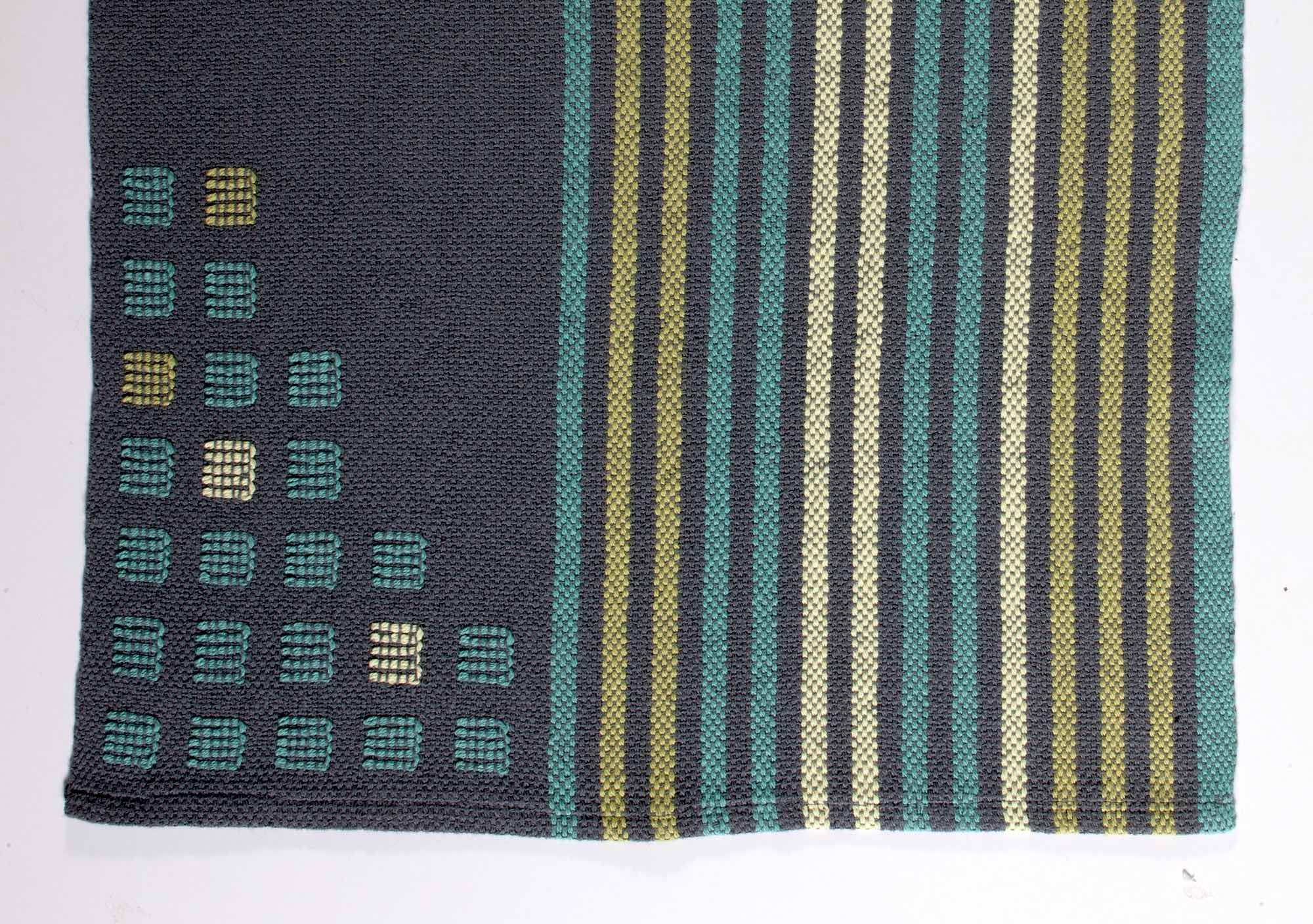 - インレイする部分の糸は、地組織の糸にしっかりと絡ませるように織り込むことで、模様が崩れにくく、耐久性のある作品に仕上がります。